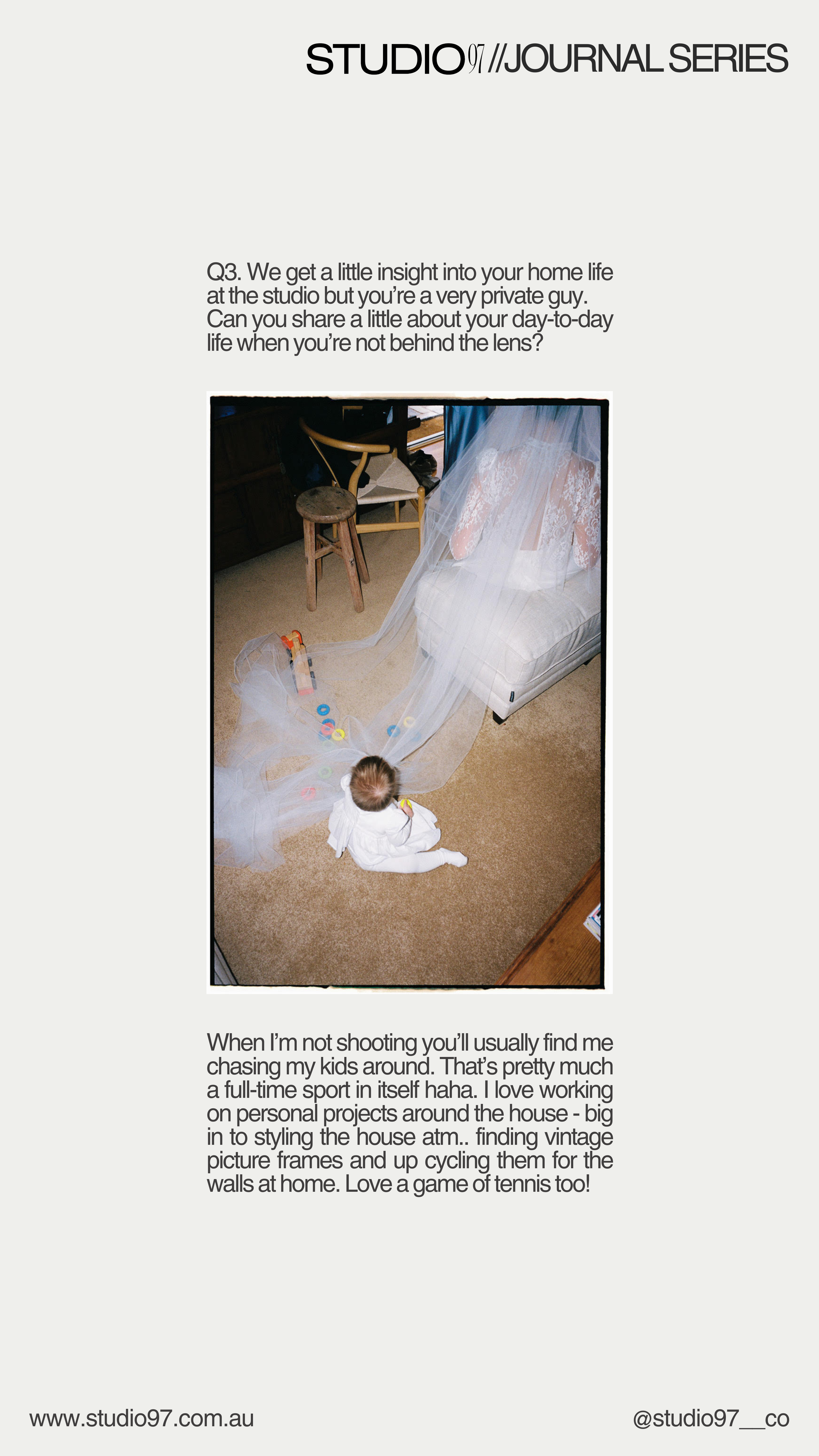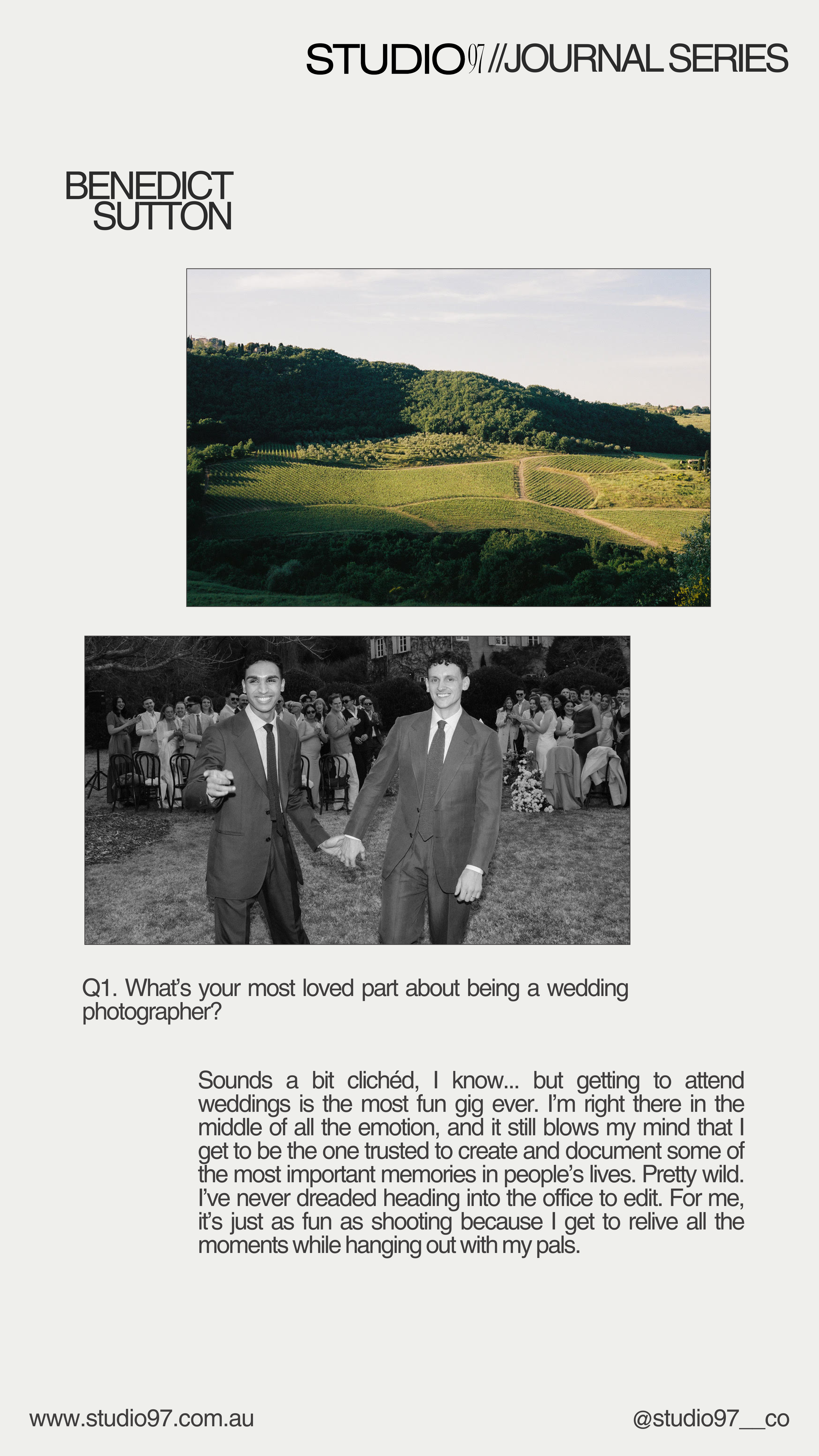 First up on the chopping block is Benedict Sutton. Known as the studio dad, Ben was one of the first people we pitched the studio vision too and he has been with us since day dot. His energy is unmatched and as the only guy in a room full of women for the first month or so, we had the honour of watching how Ben works, lives and loves his life and family.